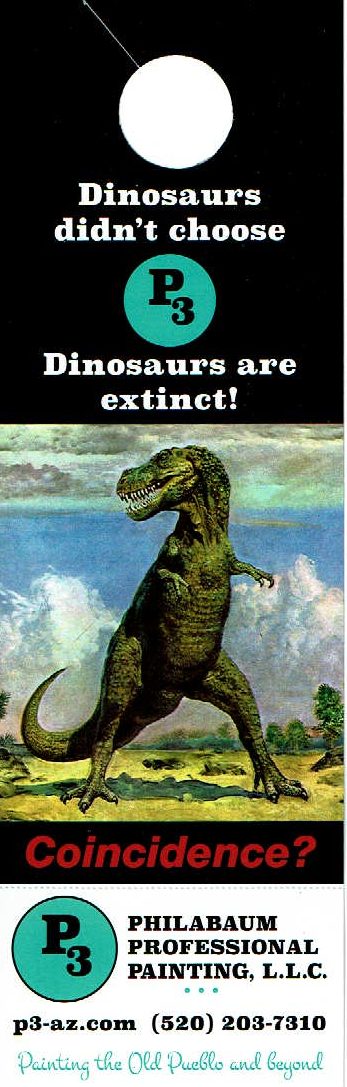 The Dinosaur Our trademark registration with The State of Arizona for The Dinosaur and tagline Tarbosaurus bataar of Mongolia by Zdeněk Burian An advertising doorhanger using the famous dinosaur image by Zdeněk Burian